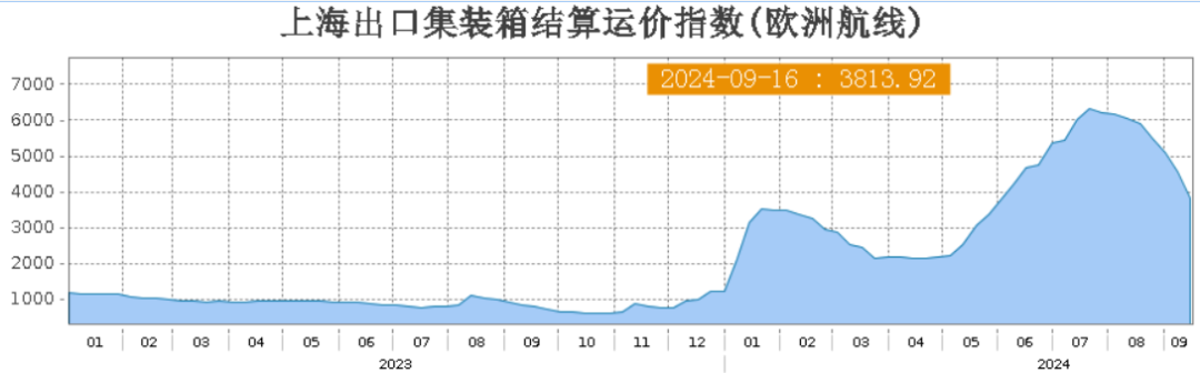 (1)现货市场方面,周一最新公布的SCFIS:欧洲航线运价指数为3813.92点,环比下降16.5%,反映出wk37出航的实际结算水平。标的现货指数大幅下降,向市场注入较强偏弱情绪,利空盘面走势。
